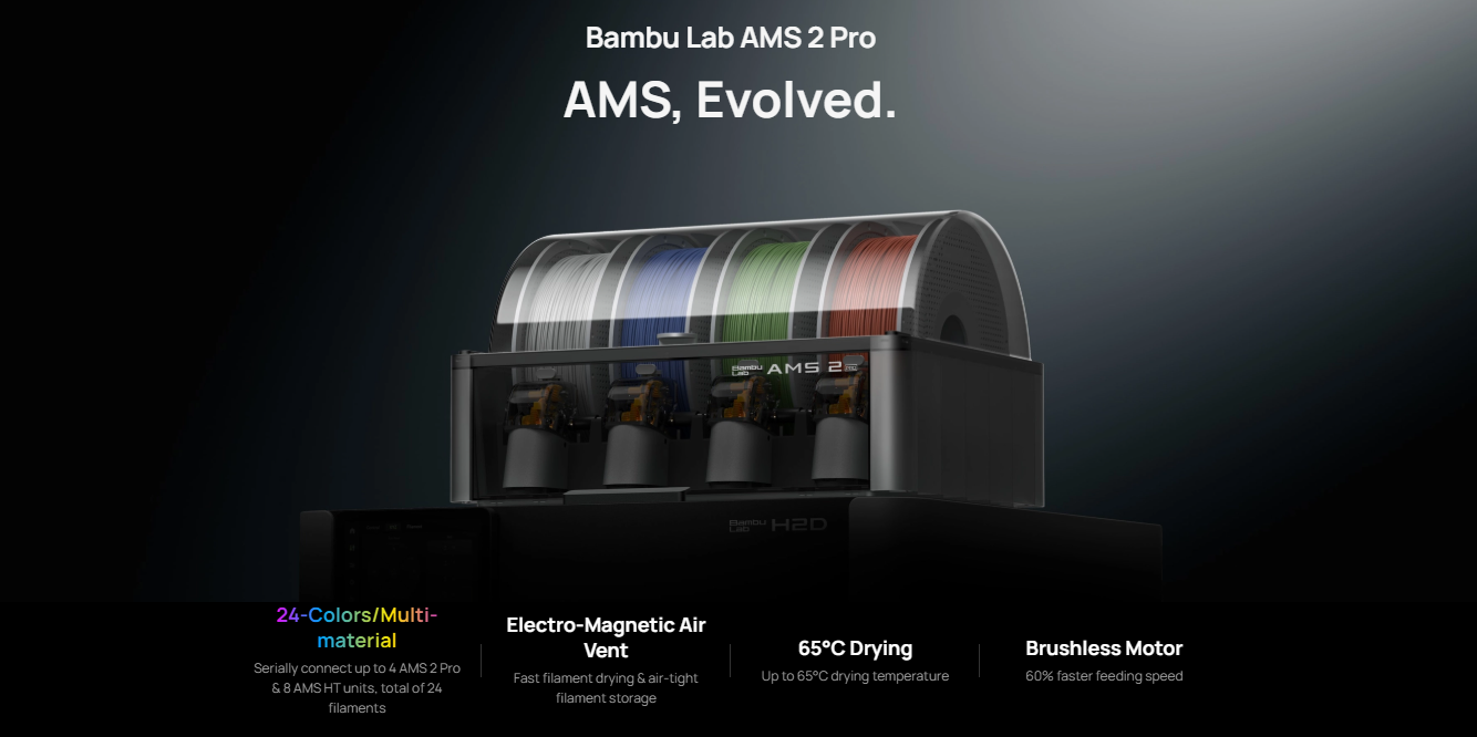 Imagine a future where multi‑material prints happen seamlessly, filament stays perfectly dry, and you spend fewer minutes swapping spools—if any at all. Enter the Bambu Lab AMS 2 Pro, the next‑gen Automatic Material System that takes your desktop 3D printer to elite, pro-level performance.