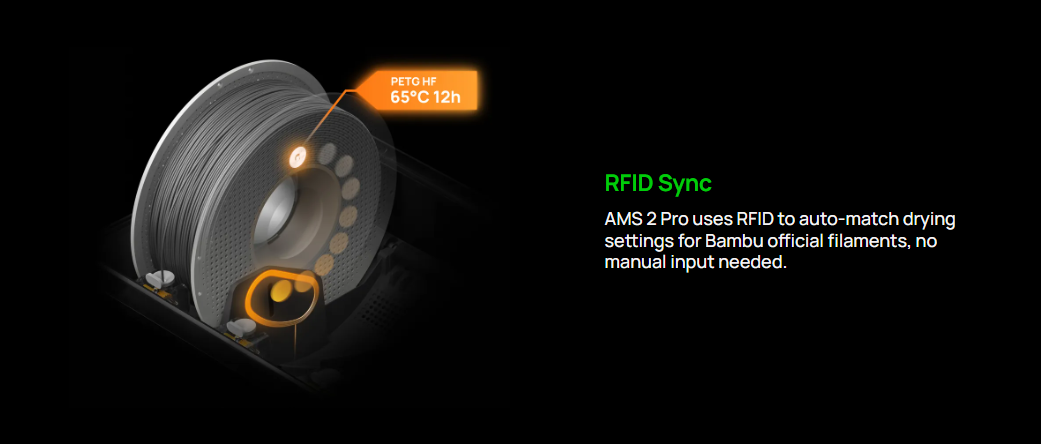 RFID Smart Sync Automatic filament detection and configuration—no need to fiddle with settings.
