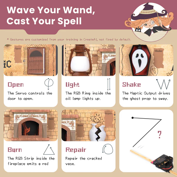 The AI Magic Kit is a comprehensive STEM learning kit designed to work with the BBC micro:bit V2, a popular educational microcontroller. Inspired by the excitement of spellcasting, this kit lets learners trigger real actions by waving a magic wand, using motion recognition and wireless communication creating an unforgettable blend of coding, AI, and play.