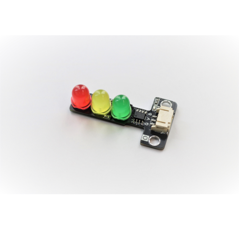 The traffic light module including three different colors LED which are red, yellow and green color, like the real-life traffic light. When received different frequency of PWM signal, it will provide different pattern of light.