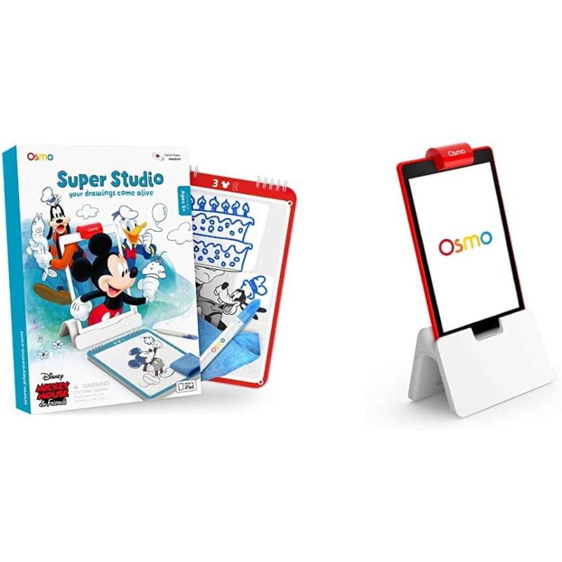 Interact with favorite Disney characters in Super Studio Mickey Mouse and his friends by Osmo, while learning the fundamentals of drawing. You can now animate your own scenes and navigate multiple adventures, and watch your drawings come alive on screen! Join your favorite characters in their adventures! The whole gang will star in your show, as Mickey and his friends go on an epic adventure through a sunny day. There is a big birthday party, a day in the park, and the big finale — the epic beach day!