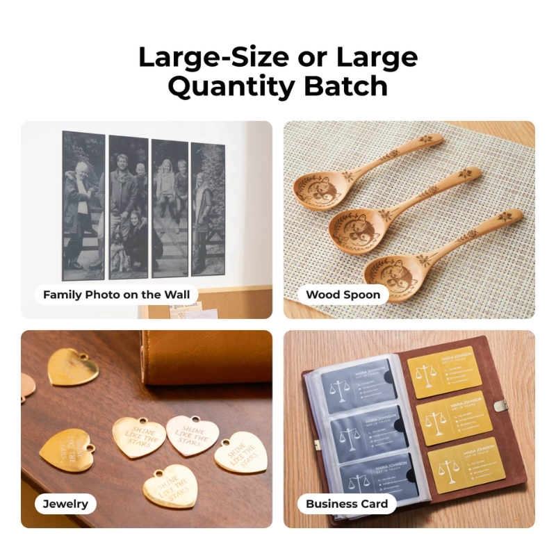 • Large Area, Wild Imagination: F1 Ultra Conveyor has 220mm*550mm working area. You can engrave large-piece photos or large quantity of objects in one take