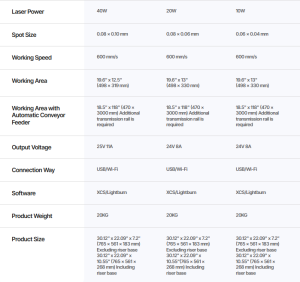 - Class 1 Safety: 5-direction flame detection, emergency stop, lid-open safety stop and laser key lock.