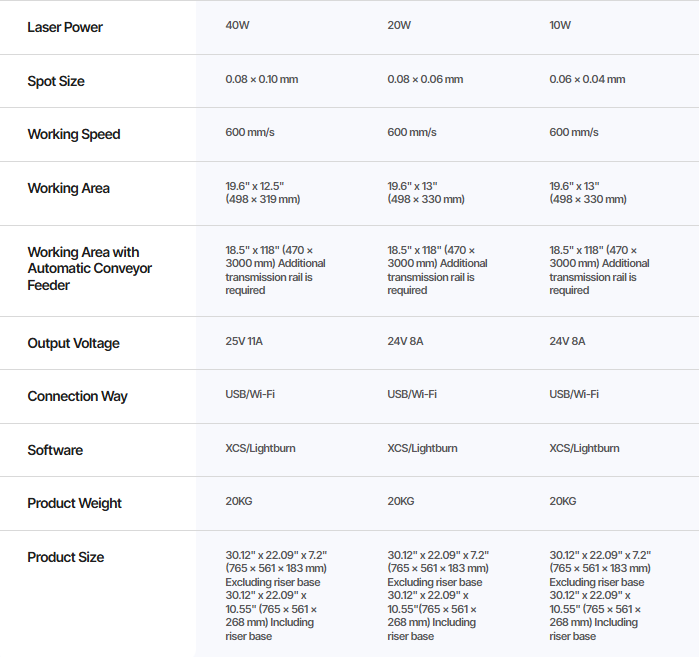 Available in 10W, 20W, and 40W modules, with an optional 1064 nm IR laser kit for advanced woodworking and engraving. Capable of precise cutting and engraving across wood, leather, acrylic, paper, fabric, and more.